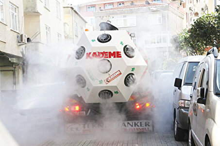 Güngören sokakları, Mikronsis Dezenfeksiyon Aracı ile baştan aşağı yıkanıyor. Güngören Belediyesinde hizmete alınan, iki tanker, onlarca temizlik ekibi ile birlikte çevre temizliği için yoğun mesai harcıyor. 30 metre uzaklığa kadar itilen ve rüzgarın etkisi ile de dış alandaki tüm mesafeleri dezenfekte edebilen Mikronsis Dezenfeksiyon Aracı, çıkardığı buhar ve sis gücü binaların, iş yerlerinin, mikrobun bulaştığı bütün yüzeylere etki ediyor. Buharlı yıkama ve dezenfekte aracı ile çöp konteynerleri her gün dezenfekte ediliyor.