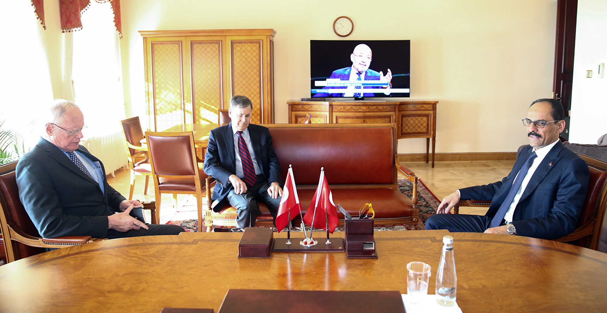 - İbrahim Kalın ve Jeffrey görüşmesi, Cumhurbaşkanlığı Dolmabahçe Ofisi'nde saat 10.30'da başladı. Görüşme, basına kapalı olarak yaklaşık 1,5 saat sürdü. Görüşmede güvenli bölge, Erdoğan'ın ABD'ye ziyareti, İdlib'deki son durum, Suriye'deki siyasi çözümle ilgili konular ele alındı.