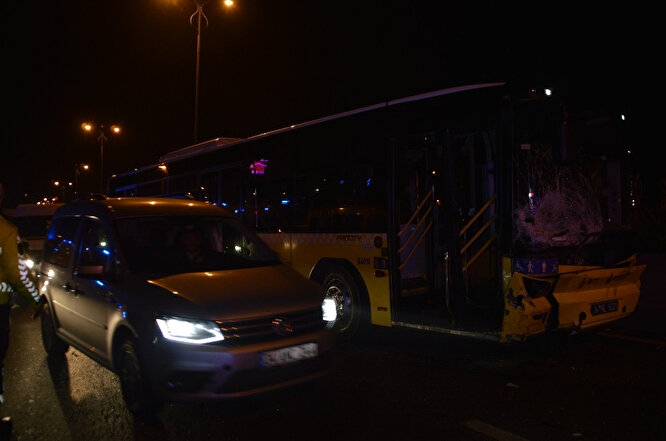 İstanbul'da İETT otobüsüyle otomobilin çarpışması sonucu biri ağır, 3 kişi yaralandı.