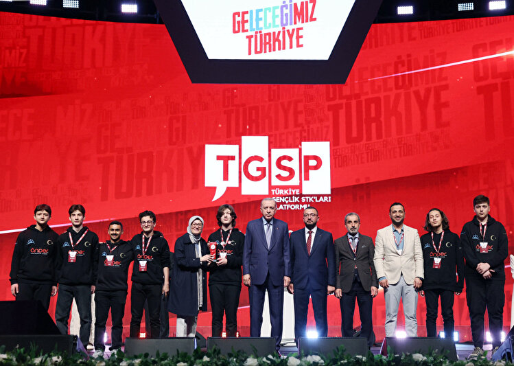 Cumhurbaşkanı Recep Tayyip Erdoğan, İstanbul Kongre Merkezi'nde Türkiye Gençlik STK'ları Platformunun (TGSP) düzenlediği 4. Türkiye Gençlik Zirvesi'ne katıldı. Programda Cumhurbaşkanı Erdoğan, Türkiye Gençlik Zirvesi'nin ödüllerini almaya hak kazananlar arasında bulunan All Robotics Team ekibine ödüllerini takdim etti.
