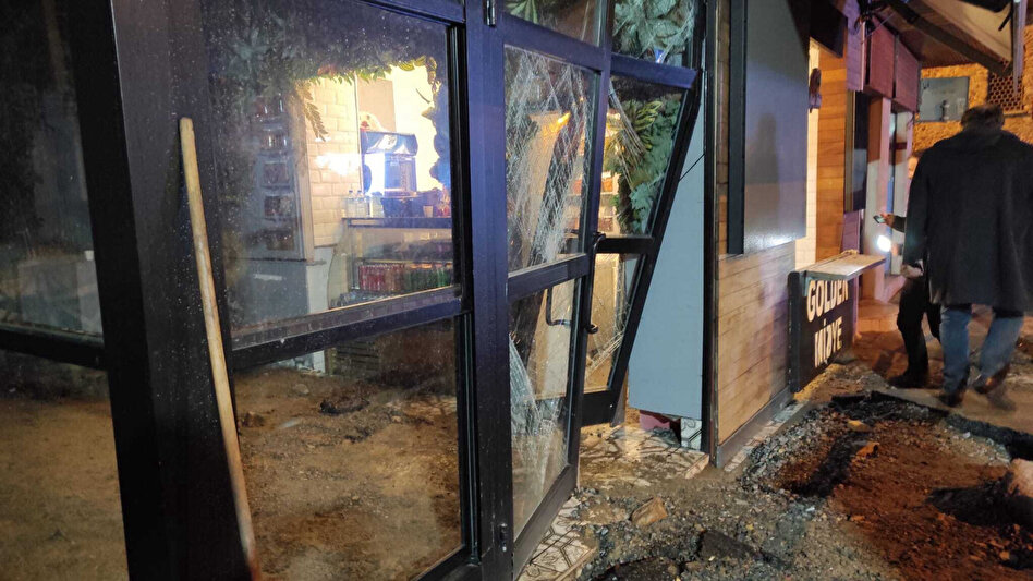 Su borusunun patlaması nedeniyle bazı iş yerlerine su ve kum ile doldu.