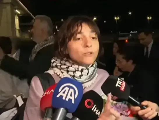 Küresel Sumud Filosu'nda bulunan ve İsrail'in 1 Ekim'de alıkoyduğu 15 Türk aktivist İstanbul'a geldi. İsrail'in alıkoyduğu 136 aktivist cumartesi, 171'i de dün sınır dışı edilmişti. Uçaktan inerek açıklamada bulunan aktivist Abidin Özkan, tüm dünyanın bu soykırımı izlediğini ve abluka kırılana kadar devam edeceklerini belirtti.