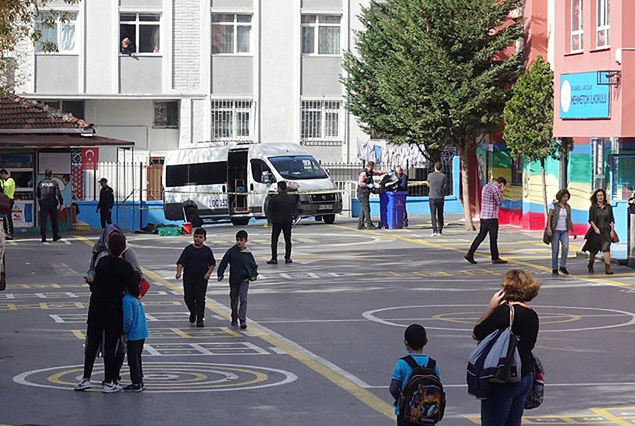 Okulun bahçesinde güvenlik önlemi alan polisin yaptığı incelemeler sonucu servis minibüsü otoparka çekildi.