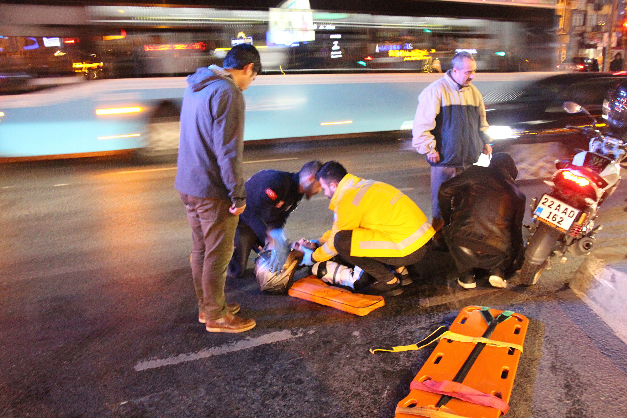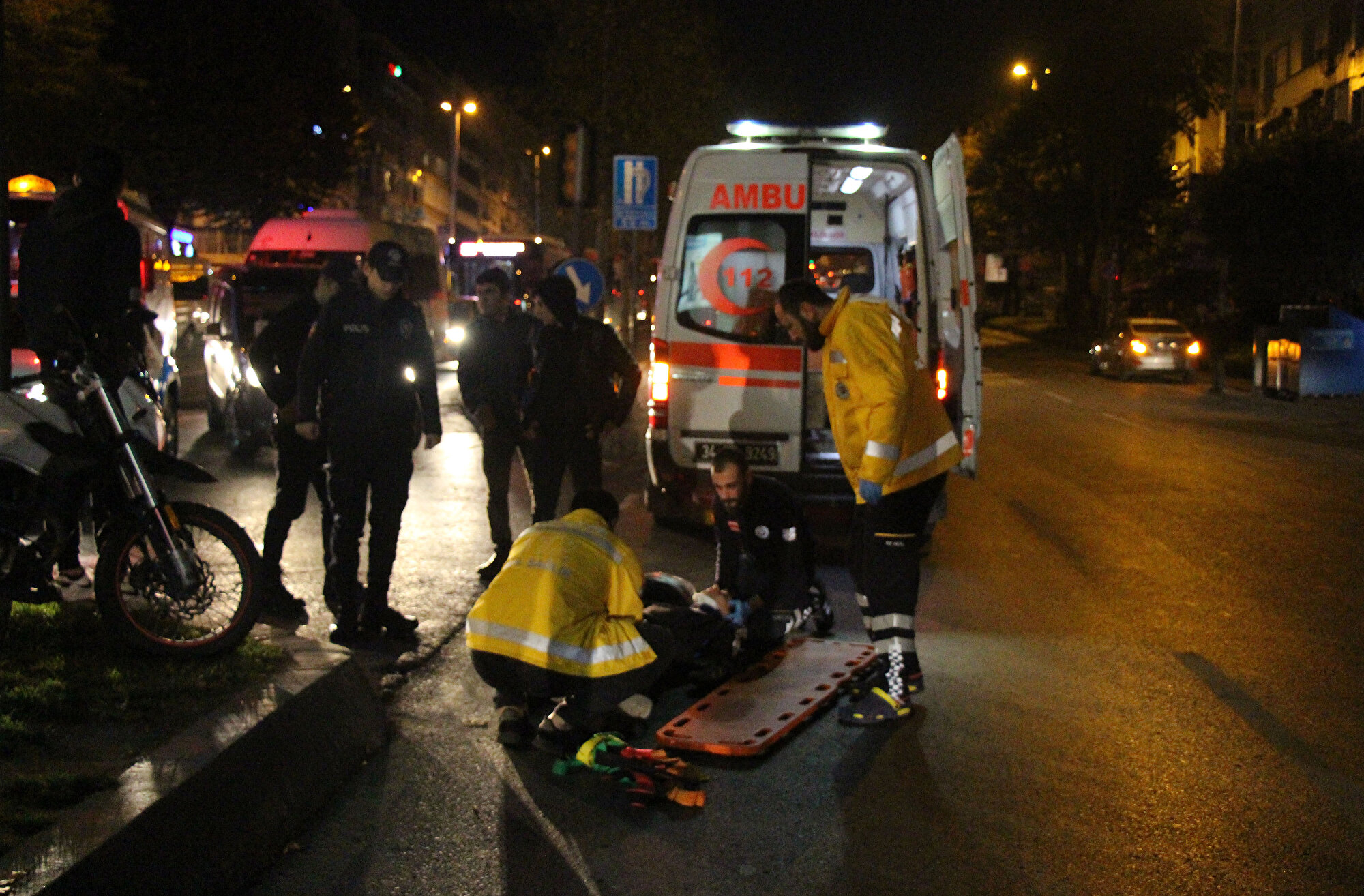 Beşiktaş istikametindeki motosiklet sürücüsü, trafik ışıklarına geldiği sırada yola dökülen yağ nedeniyle direksiyon hakimiyetine kaybederek yere düştü.