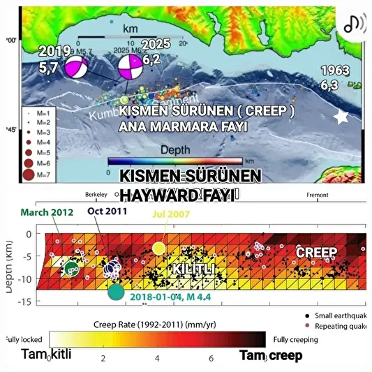 Ana Marmara Fayı kısmı creep yapan M6,6 üretebilen Hayward Fayına benzer"