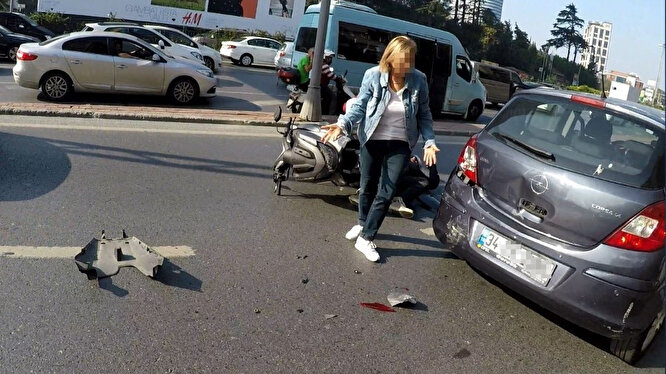 İstanbul Zincirlikuyu'da aniden frene basan sürücünün kontrolündeki otomobile motosikletli arkadan çarptı. Otomobil sürücüsünün takla atarak yaralanan gençle ilgilenmek yerine aracının arkasına bakması ve hesap sorarak tartışması "yok artık" dedirtti.