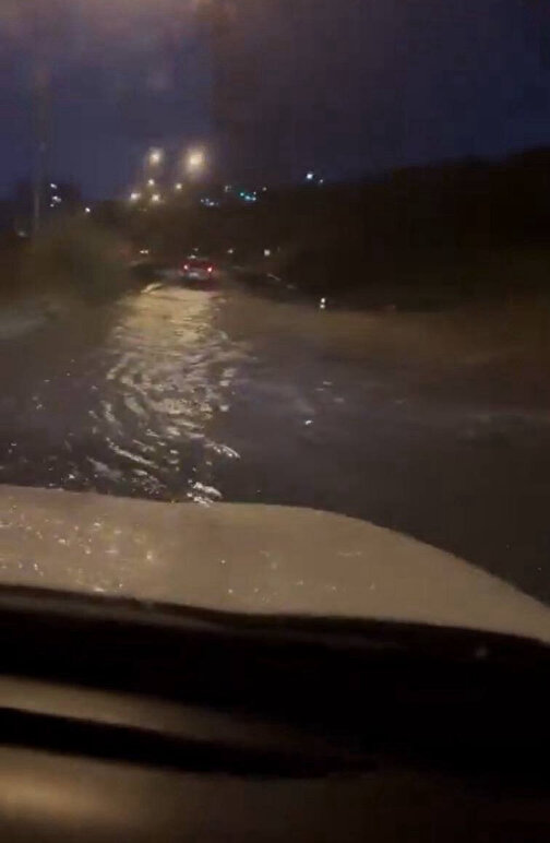 Başakşehir'de ise suyla dolan yolda araçlar ilerlemekte güçlük çekti