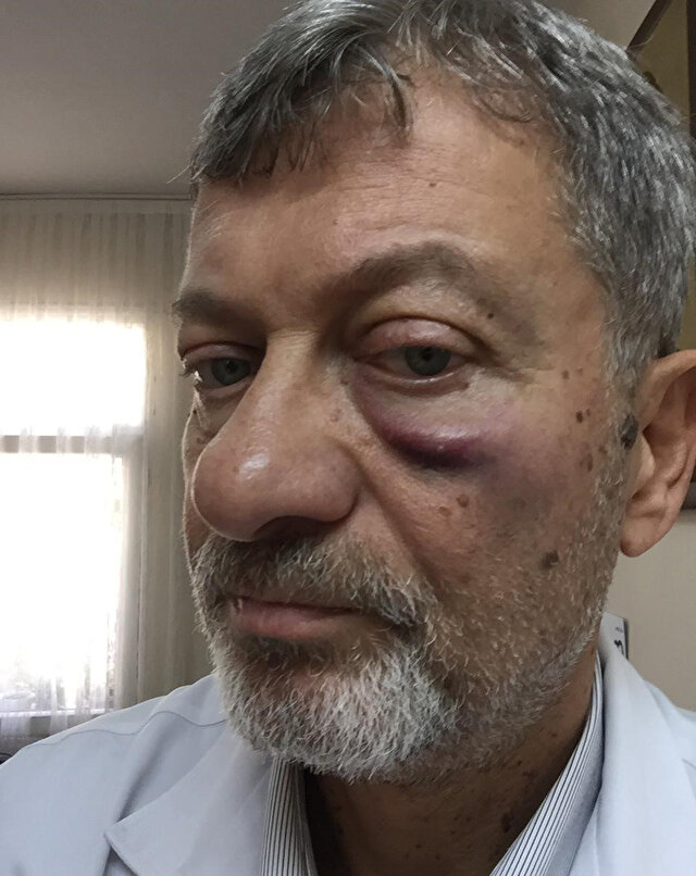 - "Yüzüme kafa attı, sol elmacık kemiğimin üzerine geldi. 10 gün şişlik hissettim ve adli rapor aldım. İnsanlar işlerini yaptıramayınca maalesef şiddete başvuruyorlar. Bir doktor olarak üzülmeyi bırakın, çok kırıldım. Türkiye'de birçok arkadaşımız bu olayı yaşıyor. Sağlıkta şiddet yasasının kesinlikle çıkması gerekiyor. Koruyucu önlemler gerekiyor. Bana saldıran kişi polis ekipleri tarafından yüz tanıma sistemiyle aranıyor. İnşallah birkaç gün içinde yakalanıp gerekli cezayı alır."