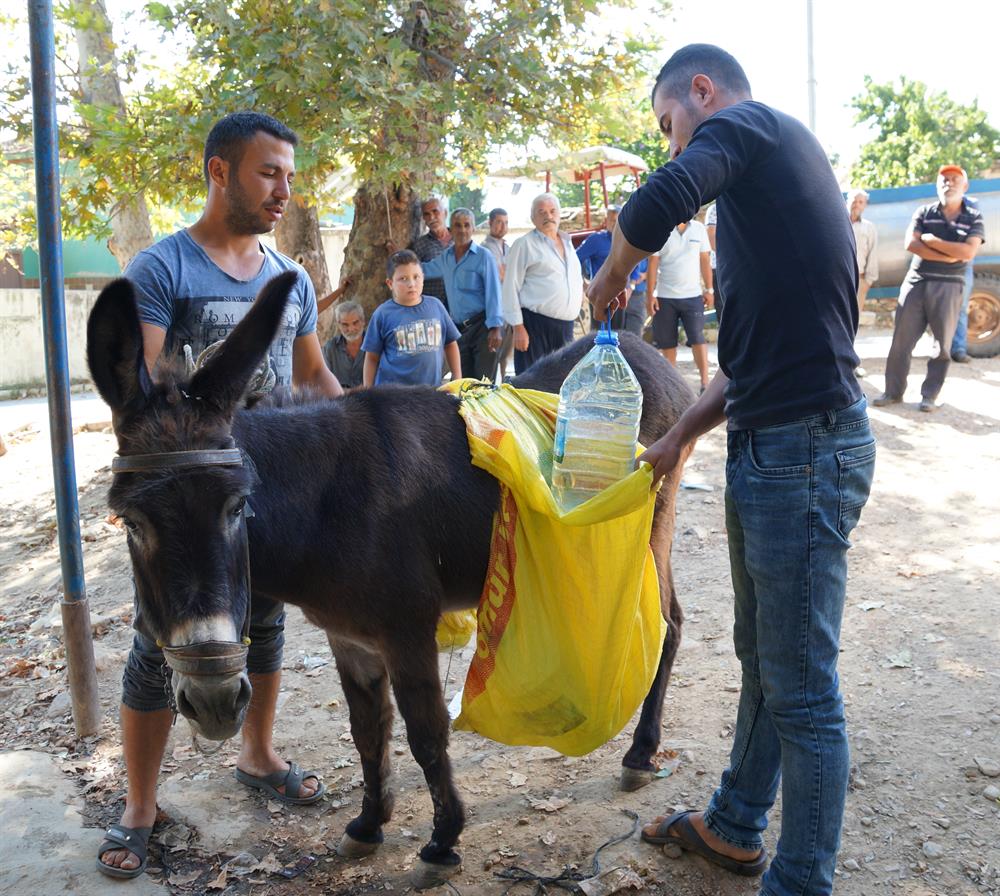 İzmir'in Kiraz ilçesinin Yukarı Çayağazı Mahallesi'nde 4 aydır evlerinin musluklarından su akmayan mahalle sakinleri çareyi eşeklerle su taşımakta buldu. Eşekleri olmayan yaşlı köylüler ise evlerine su götürebilmek için bidonları sırtlarında taşıyor.