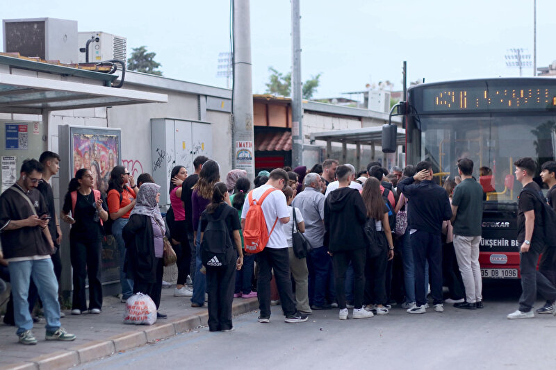 Buca ilçesinde de aktarma duraklarında vatandaşlar kuyruk oluşturdu. Uzun süre bekleyen çok sayıda kişi, işçilerle belediyenin en kısa sürede anlaşmasını istedi.