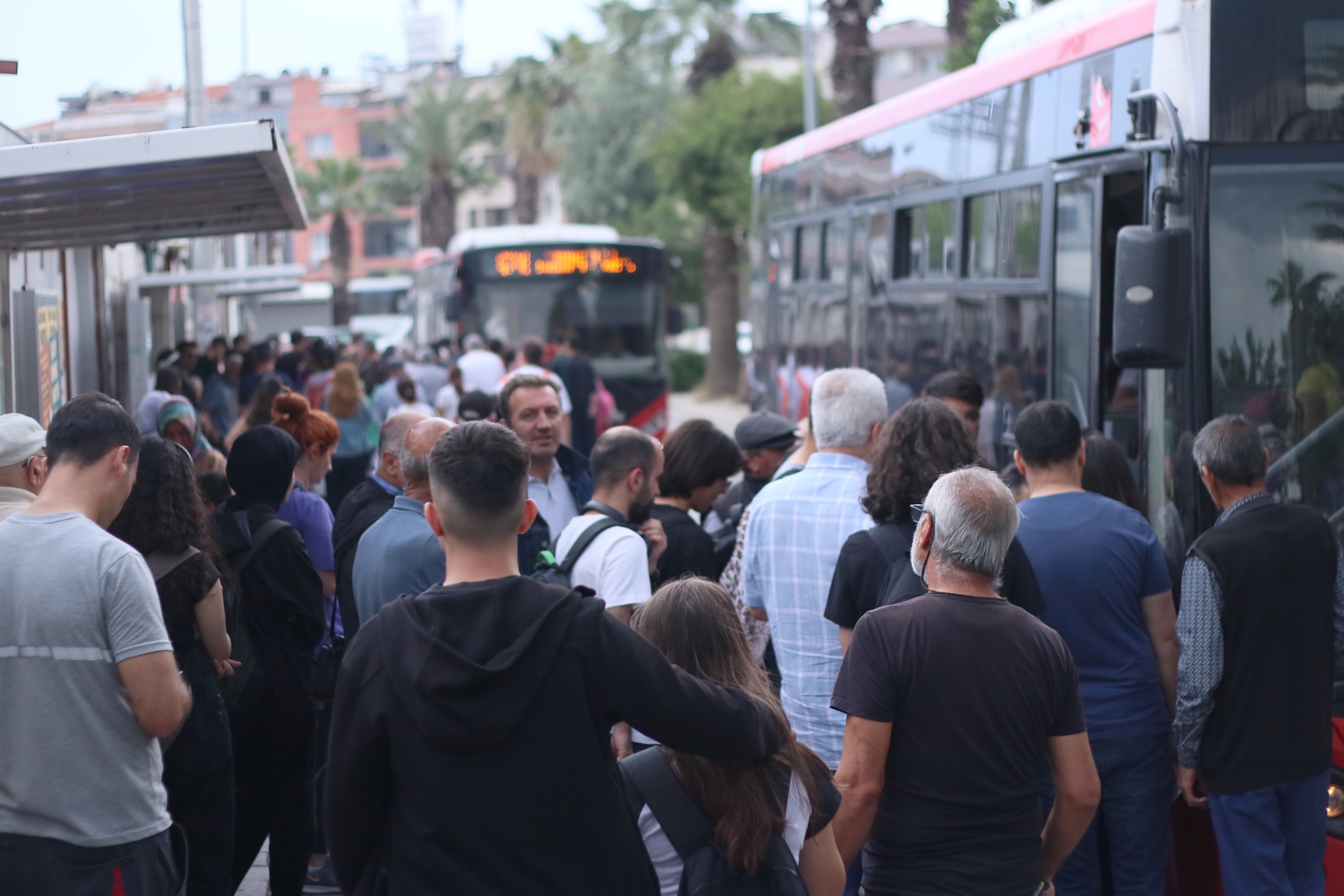 Özellikle iş yerlerinin yoğun olduğu Konak ilçesinde Mezarlıkbaşı duraklarında bekleyen vatandaşlar, İzmir Büyükşehir Belediyesi tarafından konulan seferlerle evlerine ulaşmaya çalıştı.