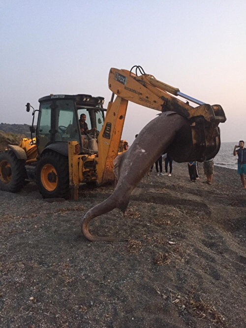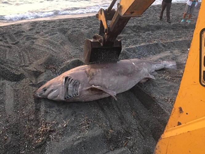 Plajda yürüyüş yapan vatandaşlar köpek balığını görünce şaşkına döndü. Bunun üzerine vatandaşlar durumu Seferihisar Belediyesi ekiplerine bildirdi. İhbar üzerine gelen ekipler, ölü haldeki 3 metre uzunluğundaki köpek balığını iş makinesi yardımıyla plajdan alarak, belediyeye ait hayvan mezarlığına götürüp gömme işlemini gerçekleştirdi.