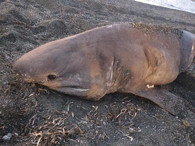 İzmir’in Seferihisar ilçesi Ürkmez Mahallesi Ömür Beldesi Halk Plajında dün sabah saatlerinde yürüyüş yapan vatandaşlarca, 3 metre uzunluğunda yarım tonluk ’boz camgöz’ türüne ait köpek balığı ölmüş halde karaya vurmuş şekilde bulundu.