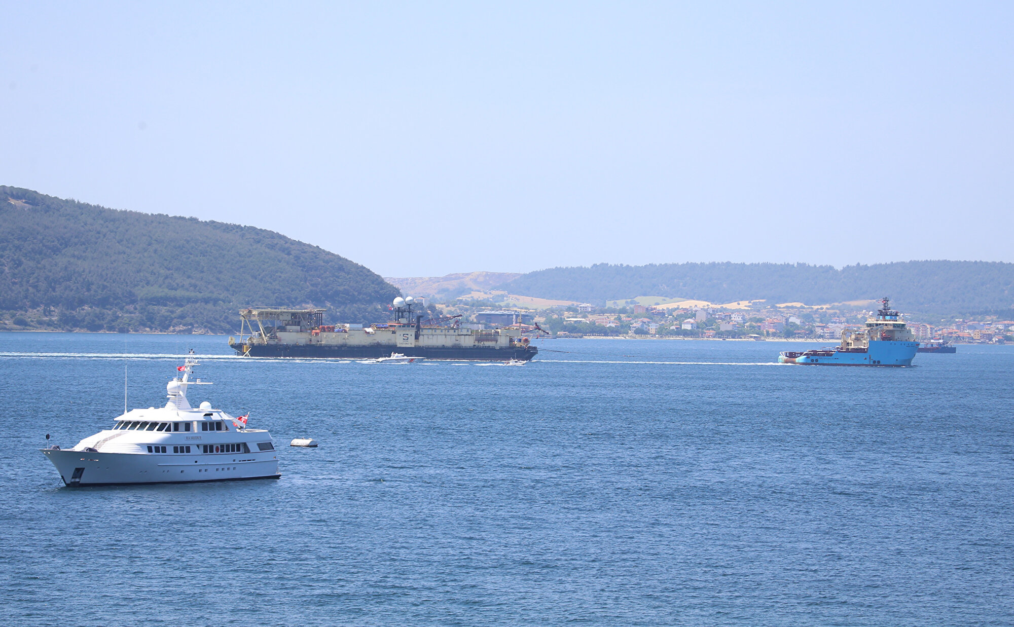 Karadeniz'de keşfedilen doğal gazı taşıyacak boruları deniz tabanına yerleştirecek gemi, Enerji ve Tabii Kaynaklar Bakanı Fatih Dönmez'in geçen hafta yaptığı açıklamanın ardından, bölgeye ulaşmak üzere Çanakkale Boğazı'ndan geçiş yaptı.