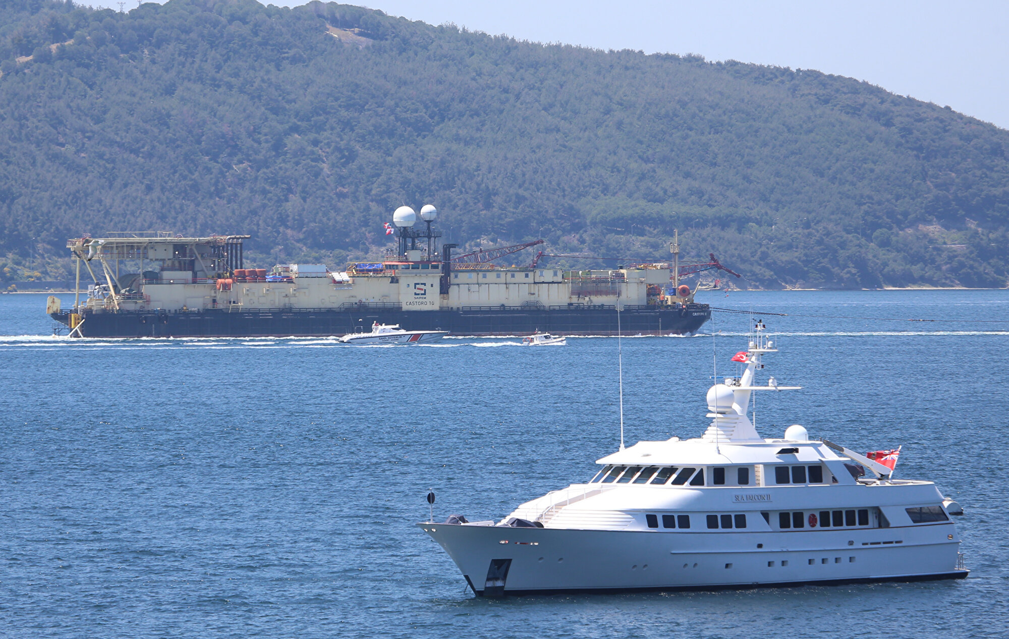 Sığ kısımlarda boru yerleştirme işlemini yapacak olan Bahama bayraklı "Castoro 10" isimli gemi, sabah saatlerinde Çanakkale Boğazı'na girdi. Toplam 140 metre uzunluğunda ve 30 metre genişliğinde, 10 bin 487 groston ağırlığında olan geminin geçişine, Kıyı Emniyeti Genel Müdürlüğüne ait römorkörlerle Sahil Güvenlik ekipleri de eşlik etti.