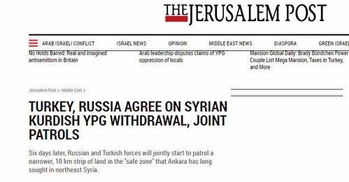 - Barış Pınarı Operasyonu’nun başlamasıyla adeta PKK/YPG yayın organı gibi hareket eden İsrail medyası ise Soçi mutabakatı sonrasında adeta yas tuttu. Ülkenin öde gelen Haaretz ve Jerusalem Post gazeteleri, mutabakat ile Türkiye’nin uzun süredir hedeflediği güvenli bölgeye kavuştuğuna dikkat çekti. Gazeteler terör örgütünün sınırdan uzaklaştırılacağına işaret etti.