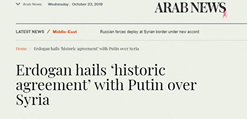 Rusya’nın Soçi kentinde Cumhurbaşkanı Recep Tayyip Erdoğan ve Rusya Devlet Başkanı Vladimir Putin’in altı saati aşan müzakerenin ardından Suriye’nin kuzeyine ilişkin 10 maddelik mutabakat muhtırasını açıklaması dünya basının manşetinde yer buldu. ABD, Avrupa ve Ortadoğu’dan medya kuruluşları, Türkiye’nin Suriye’nin kuzeydoğusunda hedeflediği güvenli bölgeyi teminat altına alması ve PKK/YPG terör örgütünü Türkiye sınırından temizlenmesini “büyük zafer” değerlendirmesiyle okuyucularına duyurdu. Türkiye’nin yanısıra Rusya’nın da Suriye’de kazanımlar elde ettiğine vurgu yapılan haberlerde kaybedenin ABD olduğunun altı çizildi.