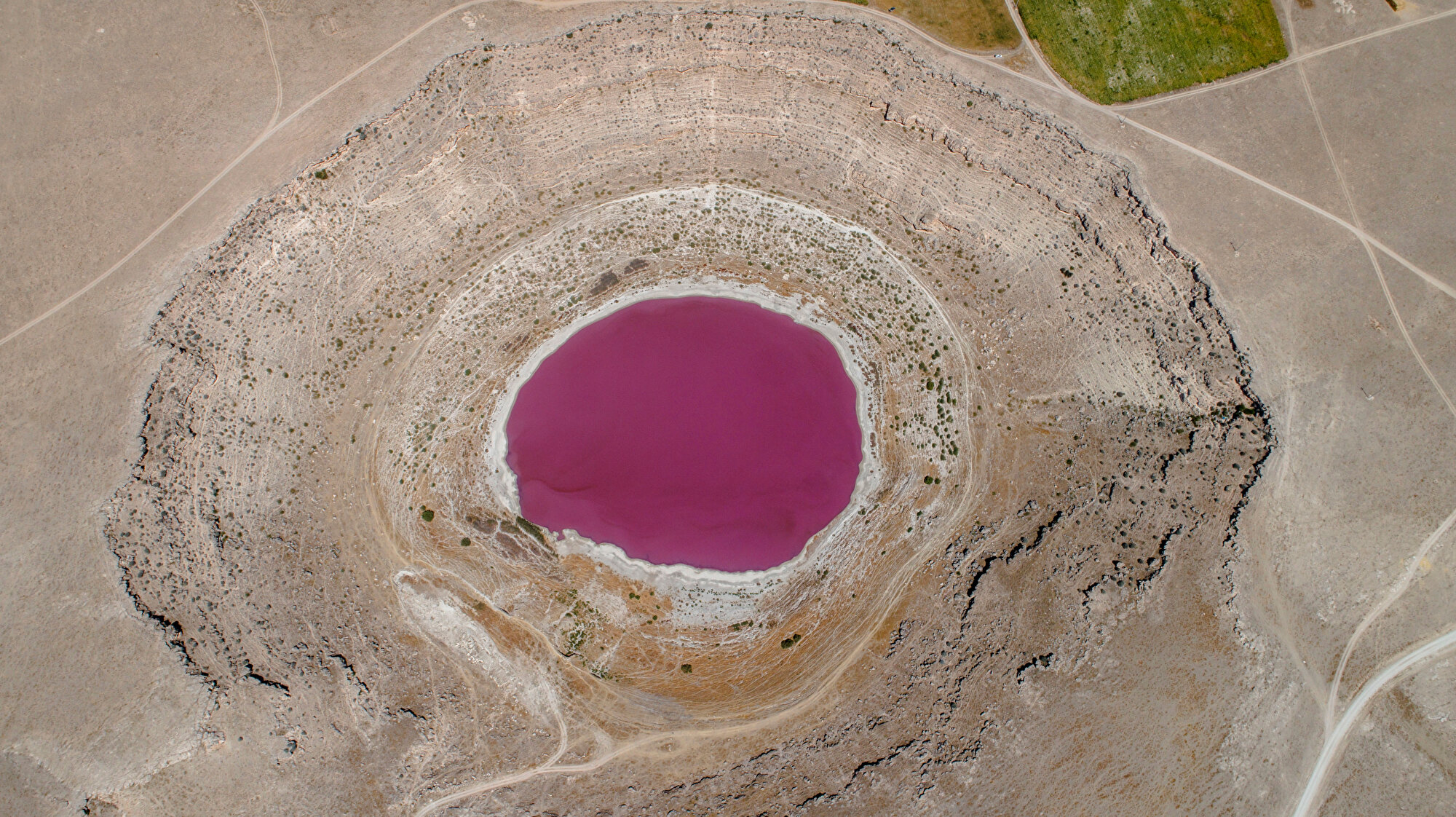 Konya'da karstik bir yapıya sahip olan Meyil Obruk Gölü, sıcakların artması ve su seviyesinin azalmasıyla, sudaki artemia salina türündeki bakteriler nedeniyle pembe renge büründü. Konya Teknik Üniversitesi Mühendislik ve Doğa Bilimleri Fakültesi Jeoloji Mühendisliği Bölüm Başkanı Prof. Dr. Fetullah Arık, ''Bölgedeki Tuz Gölü'nde, Obruk Gölü'nde ve Meke Gölü'nde olduğu gibi zaman zaman suların azalmasına bağlı olarak bakteri patlamaları yaşanabiliyor. Şu andaki renklenmenin nedeninin o olduğunu düşünüyoruz'' dedi.