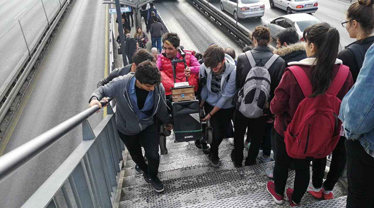 Sokağa adım atar atmaz bu engellerle karşı karşıya kaldıklarını belirten Avcı, "Burada engelli yolu var köprüden karşıya geçebiliyor engelli kişi. Asansörüne de binebiliyor ama metrobüse binemiyor niye çünkü yolu yok. Arada merdiven var. Güler misin ağlar mısın?" diye konuştu.