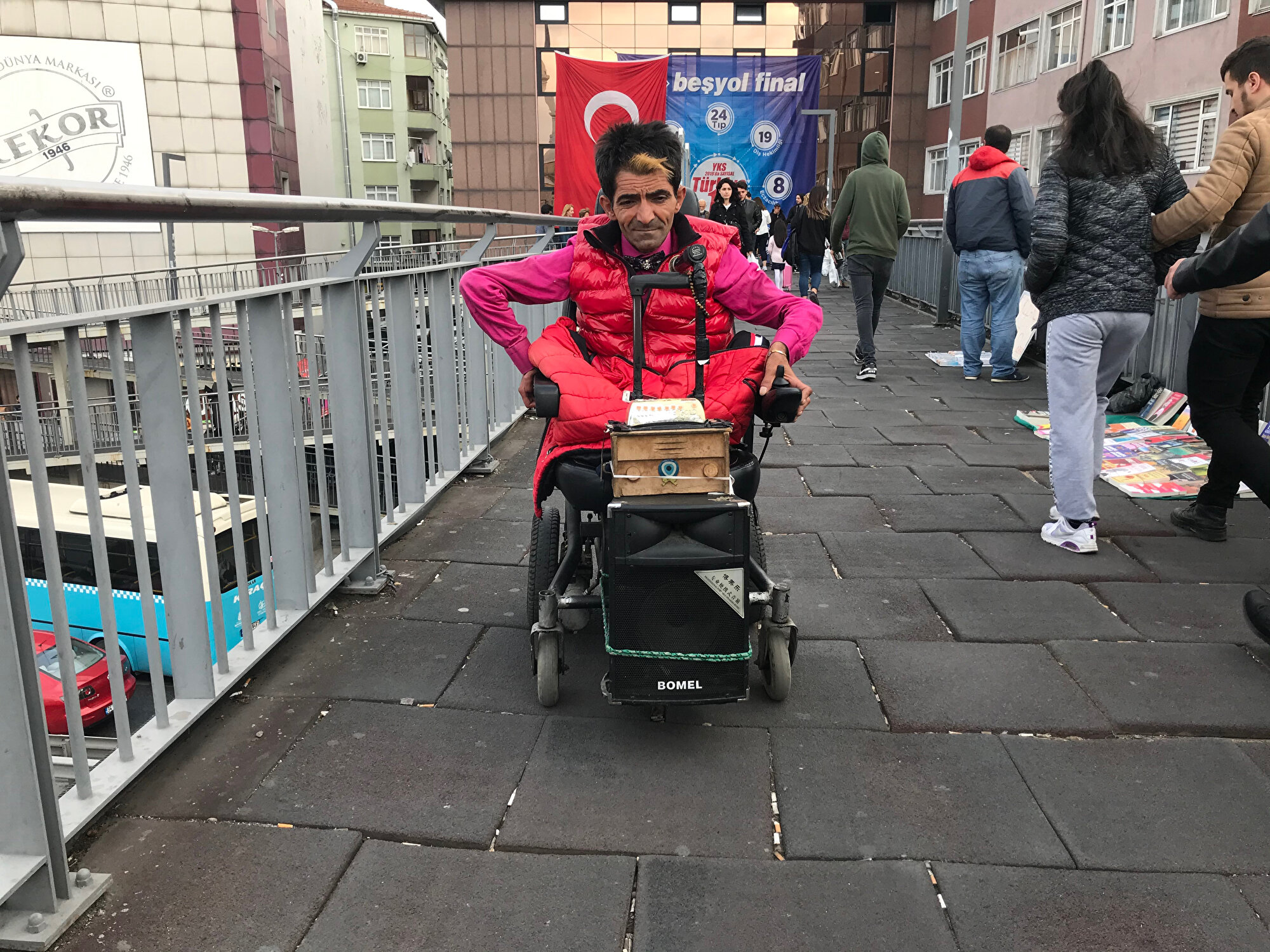 - "Bizim en büyük engellimiz yaya yolları. Engelli yollarının olmaması, engelli yollarına park eden araçlar artık bunlara alıştık ama metrobüste ilginç bir şeyle karşı karşıya kaldım. Gerçekten şok oldum. Yaklaşık 20 gün önce benim Küçükçekmece Adliyesi'nde imza vermem gerekiyordu. Durakta indim baktım merdivenler var asansör yok. Genç arkadaşlar geldi. 5-6 genç arkadaş beni yukarıya kadar çıkardı. Çok mutlu oldum. Neden yapılmadı acaba her şey müsait diye düşündüm. Bir baktım ki asansör de var. Çok ilginçtir asansör var ama engelli yolu yok. Aziz Nesin kitaplarına konu olacak bir olay. Girişi yok. Merdivenin altına kadar geliyorsun geri dönüyorsun. Gerçi asansör çalışmıyor ama çalıştığını varsayarsak yani."