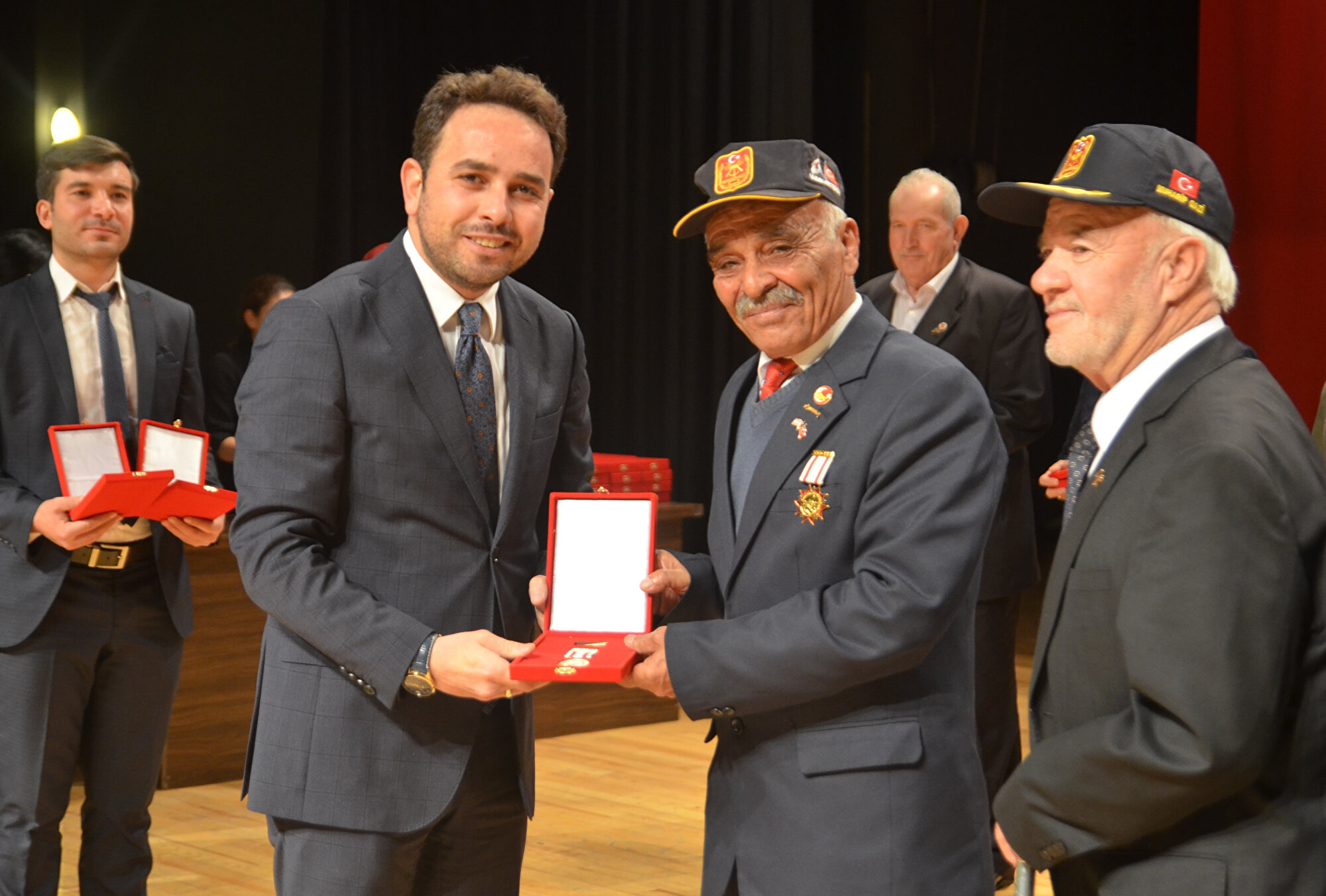 Toraman ve protokol üyeleri, konuşmaların ardından 170 gaziye madalya ve beratlarını takdim etti.