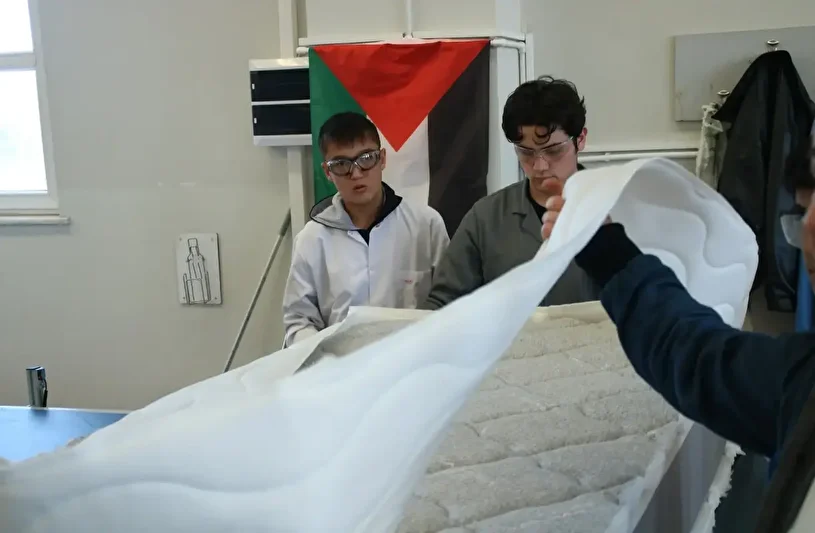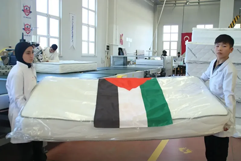 Kayseri'de Türkiye Tekstil Sanayi İşverenler Sendikası Mesleki ve Teknik Anadolu Lisesi öğrencileri, üretimini yaptıkları 60 yatağı Kızılay aracılığıyla Filistin’e gönderecek.