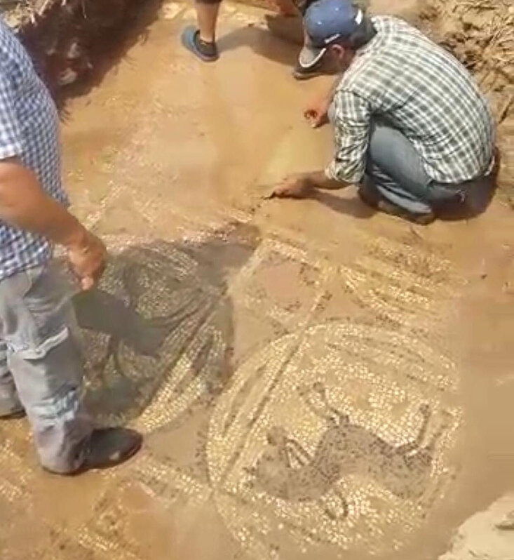 Bunun üzerine izinsiz kazı yapılan bölgeye operasyon düzenleyen jandarma ekipleri, üzerinde çeşitli hayvan motifleri ile yazıların yer aldığı Roma dönemine ait 2 bin 200 yıllık olduğu değerlendirilen yaklaşık 50 metrekare büyüklüğündeki mozaiği belirtilen tarlada buldu.