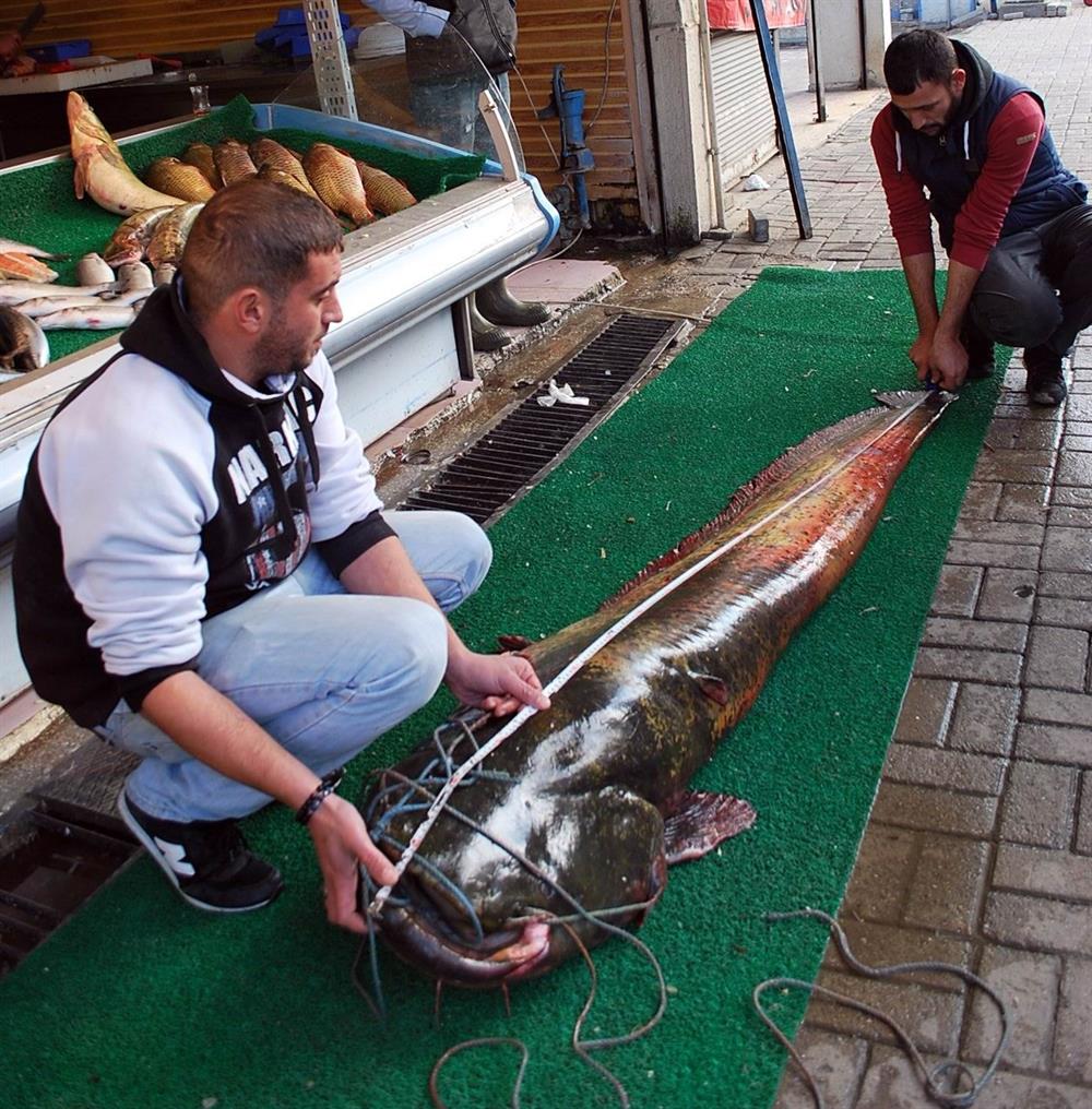 Demirköprü Barajı'nda balıkçı Hüseyin Uslu tarafından yakalanan 2 metre 44 santim boyunda ve 110 kilogram ağırlığındaki dev yayın balığı ise ilçedeki Kayalar Balıkçılık tarafından satın alındı.