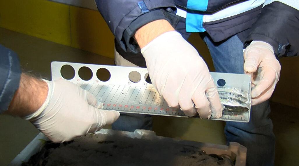 El koyulan balıkların mülkiyetini kamuoyuna geçirip milli emlak vasıtasıyla satışlarının gerçekleştirildiğini söyleyen Karaca, "Gürpınar Su Ürünleri Halinde yaptığımız denetimlerde yasal boyu altında avlanan balıkçıları tespit ettik. Bu balıklara el koyma işlemi gerçekleştirdik. El koyduğumuz mülkiyetini kamuoyuna geçirip milli emlak vasıtasıyla satışlarını gerçekleştiriyoruz. Eğer satışlar olmazsa satış çıkmazsa hayır kurumlarına bağışlıyoruz ama oda olmazsa imha ediyoruz. El koyduğumuz balıklar; hamsi balığı 9 santimetre olması gerekirken yaklaşık 5-6 civarında tespit ettik. Barbun, İstavrit, Mezgit balıklarında da yasal boy 13 santimetre olması gerekirken yasal boyun altında olduğu için el koyduk” şeklinde konuştu.