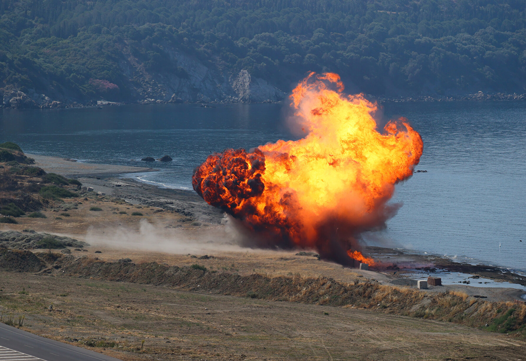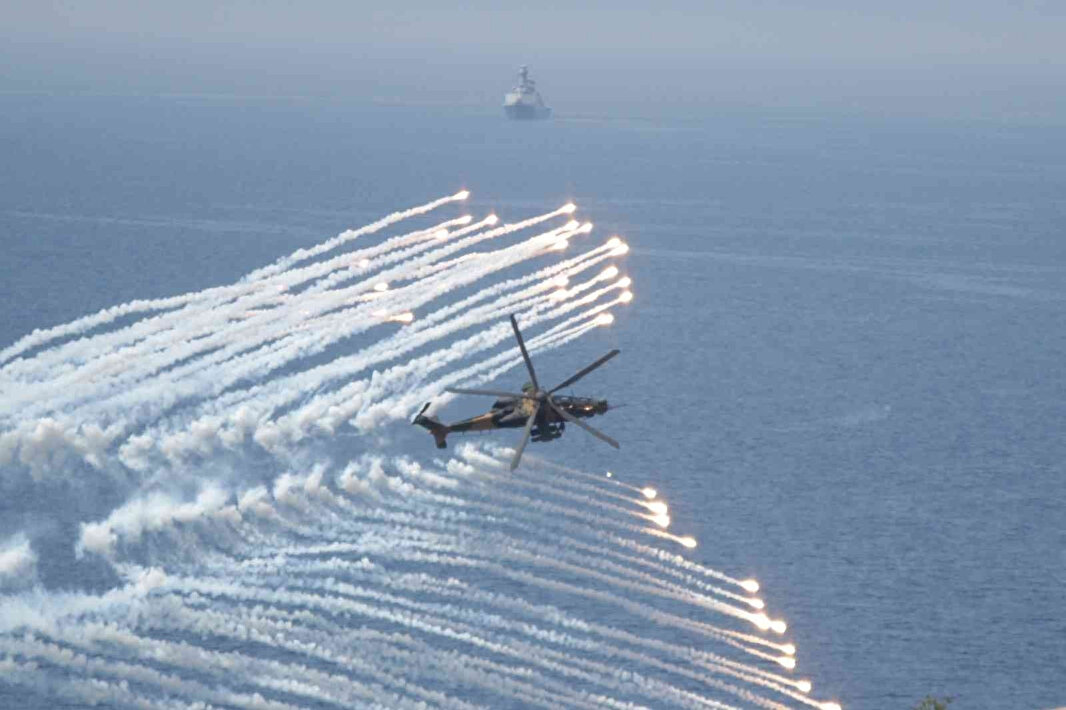 Amfibi hücum harekatını destekleyen ateşler çerçevesinde keşif, gözetleme, ateş destek unsurları ve taarruz helikopterleri eş zamanlı koordineli hareketiyle senaryo gereği tespit edilen düşman zırhlı araçları, tanksavar atışlarıyla imha edildi.