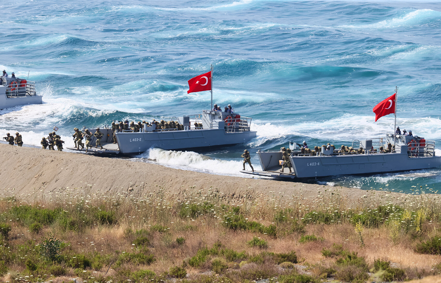 Amfibi hücum harekatına yönelik yakın hava desteğiyle beraber tank topu ve havan atışları gerçekleştirildi.
