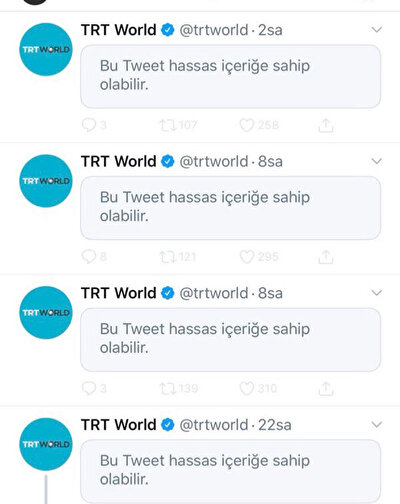 Twitter Barış Pınarı Harekatı süresince, harekat hakkında doğru ve açıklayıcı haber üreten kaynaklara sansür uygulamıştı. Başta TRT World olmak üzere harekat hakkında yabancı dilde yayın yapan kaynakların paylaşımları hassas içerik kategorisine alınmıştı.