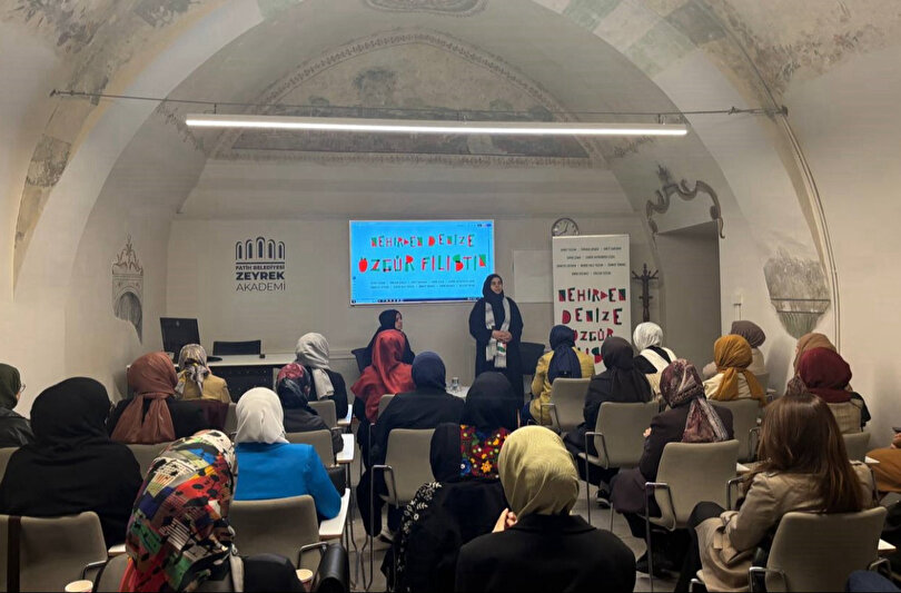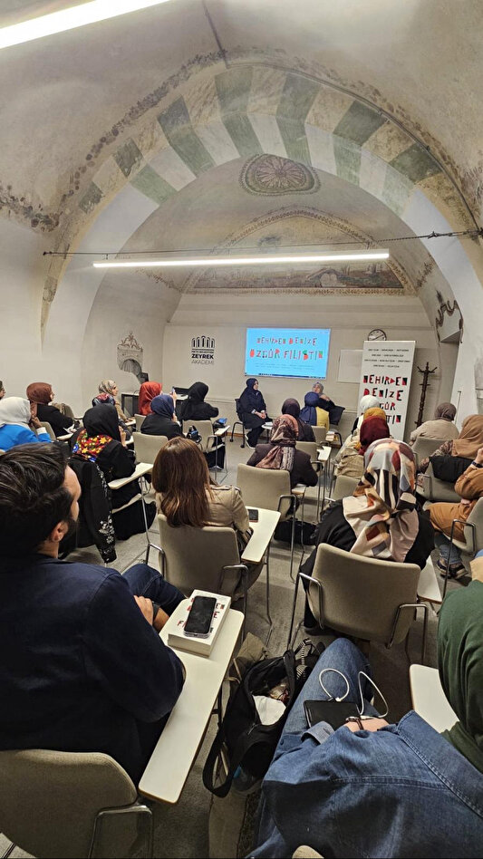 Fatih Belediyesi Zeyrek Akademi'de düzenlenen programda, gazeteci yazar Cahide Hayrunnisa Çiçek moderatörlüğünde 1948 yılından sonra Filistin'de yaşanan olaylar anlatıldı.