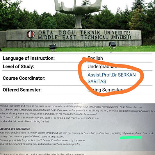 ODTÜ'de Elektrik Elektronik Mühendisliği Bölümü hocası, öğrencilere gönderdiği yönergede online sınavlarda başörtülü kızların başlarını kısmen açmalarını istedi.