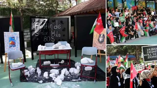 Etkinlikte öğrenciler, “Okulumuz bombalanmıyor, hiç bir okul bombalanmasın’’ diyerek soykırımı haykırdı.