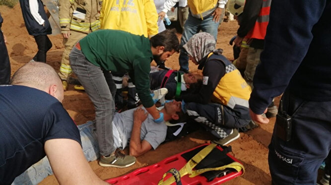 Can pazarının yaşandığı arazide toprak altında kalan 3 işçi yaralandı. Olay yerine sağlık ve itfaiye ekipleri sevk edildi. İşçiler itfaiyenin çabalarıyla toprak altından çıkarıldı.