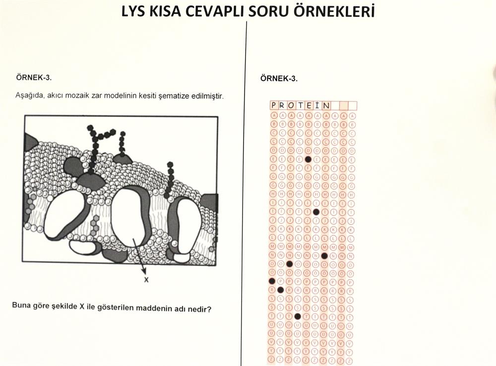 ÖSYM Başkanı Prof. Dr. Demir, kısa cevaplı soruların nasıl olacağını açıkladı. Demir'in açıklamasına göre cevaplar bir kelime yada birkaç sayı uzunluğunda olacak. Bu cevapların da optik kağıda geçirilmesi istenecek.