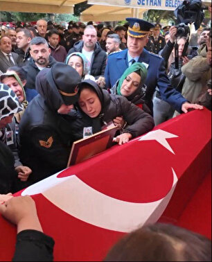 Irak'ın kuzeyinde Pençe-Kilit operasyonu bölgesinde PKK'lı teröristlerin taciz ateşinde yaralanıp tedavi gördüğü hastanede şehit olan Uzman Çavuş Eren Kızıldağ (25), memleketi Adana'da düzenlenen törenle toprağa verildi. Şehidin tabutuna sarılıp, fotoğrafını öperek ağlayan eşi Esma Kızıldağ (25), "Canım eşim. Doyamadım Allah'ım" diye gözyaşı döktü.