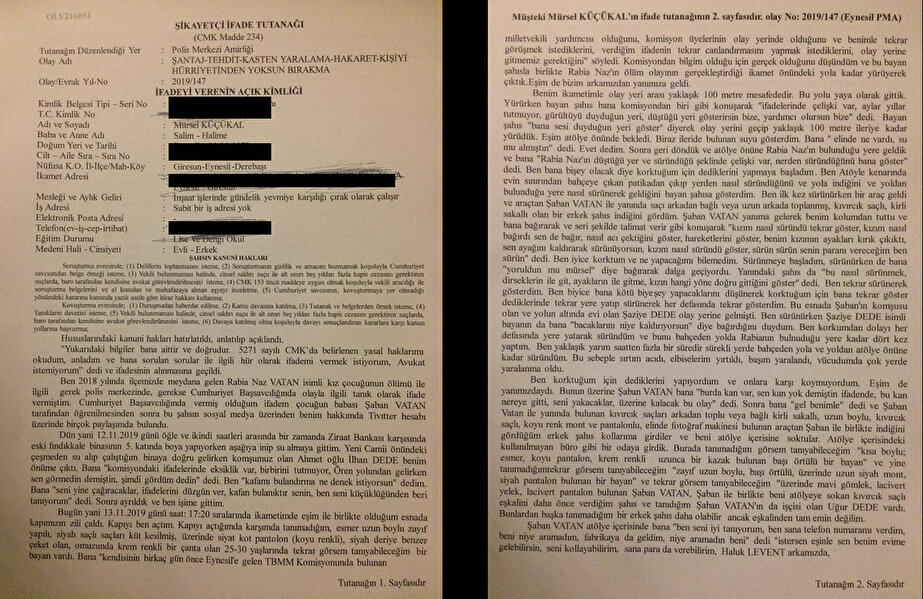 Mürsel Küçükal'ın polise verdiği ifadenin tam metni