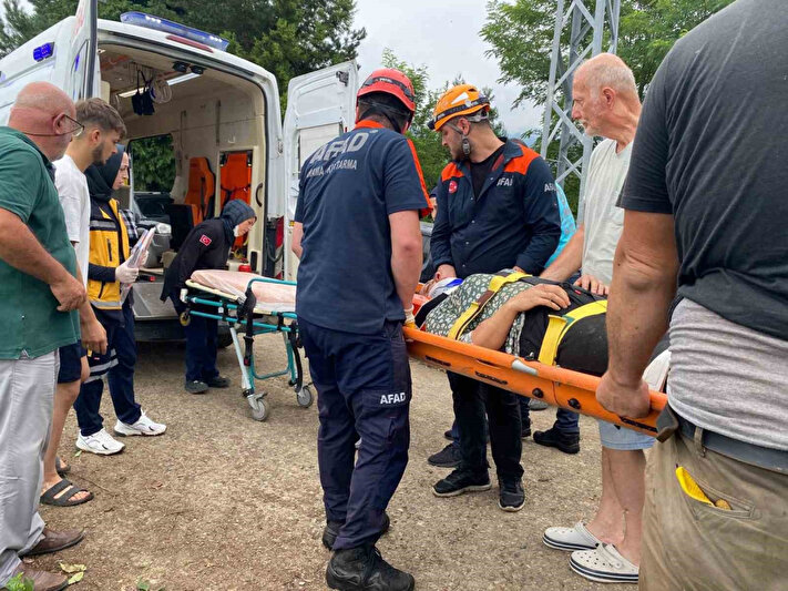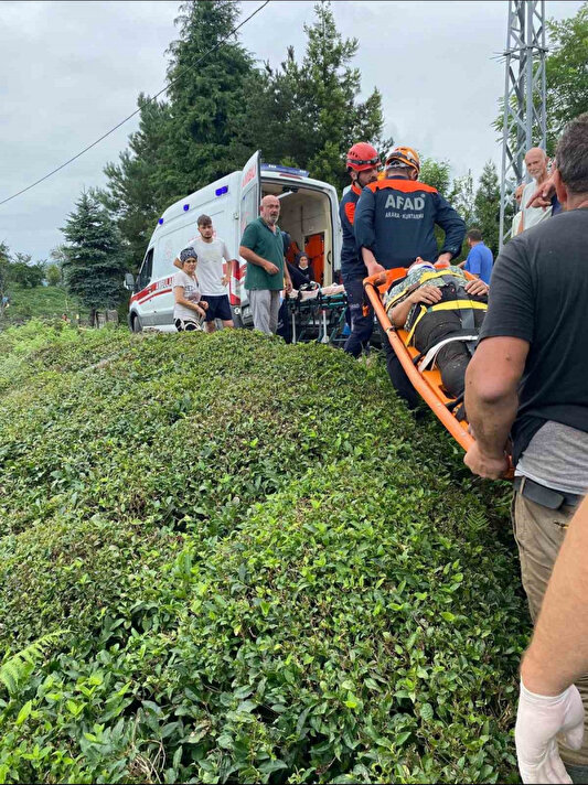 Rize’de çay topladığı sırada üzerine ilkel teleferiğin taşıyıcı kısmı düşen kadın yaralandı.