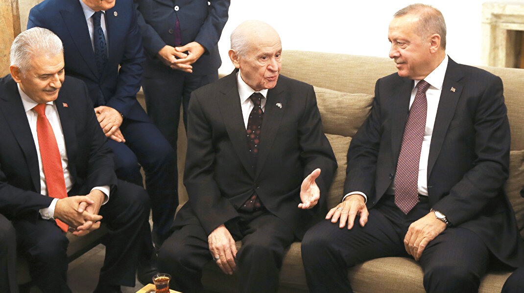 - Eylül ayında geçirdiği üst solunum yolu enfeksiyonu nedeniyle dinlenen MHP lideri Devlet Bahçeli, uzun bir aranın ardından dün ilk kez Meclis’e geldi. Bahçeli, parti grubuyla yediği yemeğin ardından muhalefet kulisinde vekillerle sohbet etti. Bu sırada Cumhurbaşkanı Erdoğan, grup toplantısının ardından eski Meclis Başkanı Binali Yıldırım ile kuliste Bahçeli ile bir araya geldi. Bahçeli ile bir süre sohbet eden Erdoğan, Bahçeli’ye “Maşallah sizi iyi gördüm” dedi. Erdoğan, gazetecilerin görüşmeye ilişkin sorusu üzerine “Güzel bir sürpriz oldu” dedi.