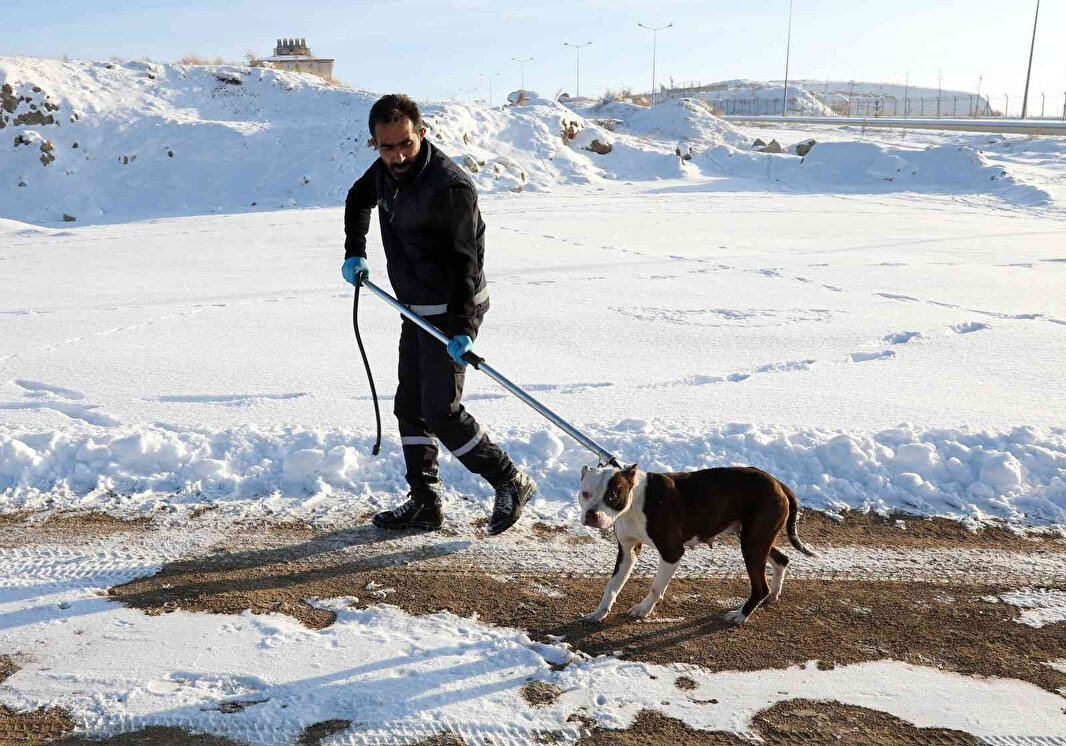 Van Büyükşehir Belediyesi, sokağa terk edilen pitbull cinsi köpeği yakalayarak hayvan bakım ve rehabilitasyon merkezinde koruma altına aldı.