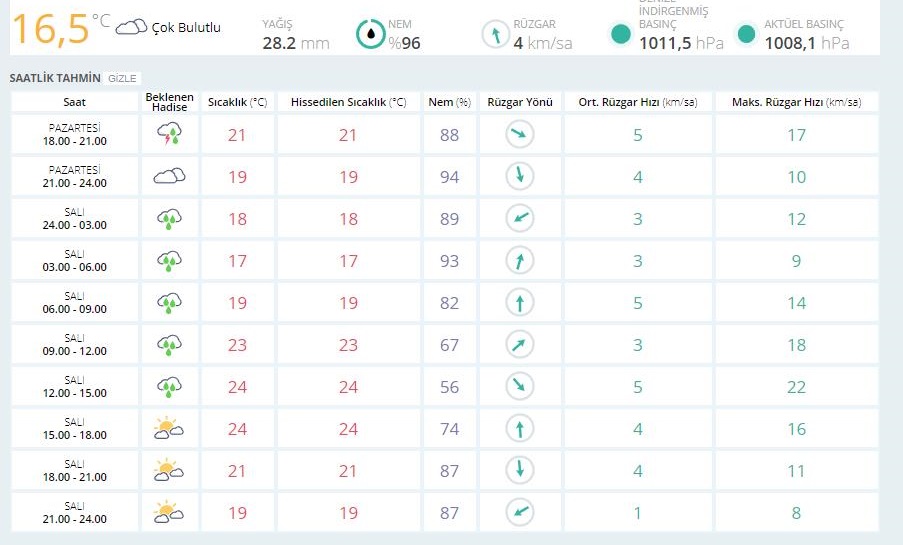 Meteoroloji verilerine göre, Sakarya'da yarın öğlen saatlerine kadar sağanak yağış devam edecek