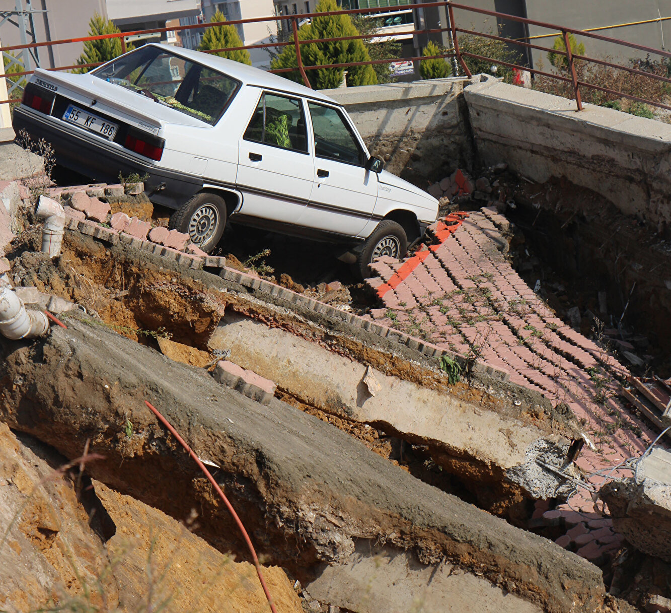 Afganlı Deresi’nde yürütülen ıslah çalışmasında kazı yapıldığı sırada bir binanın istinat duvarı çöktü. Olayda park halindeki bir otomobil çökmeyle birlikte yamaca kaydı.