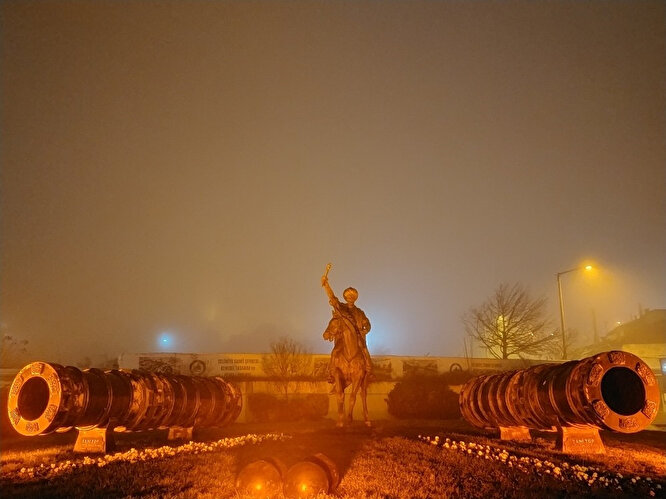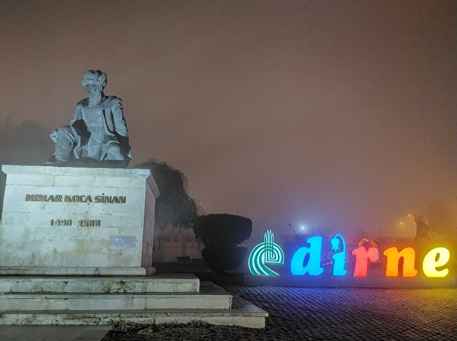 Edirne'de sabah saatlerinde başlayan ve gün içerisinde devam eden sis, akşam saatlerinde etkisini arttırdı.
