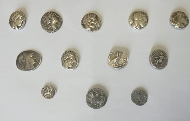 M.Ö. 5. yüzyıl ile M.S. 1. yüzyıllık Grek, Helenistik ve Roma dönemlerine ait olduğu düşünülen, 12 adet gümüş sikke, 2 adet altın yüzük ve 1 adet 8 yapraklı 6 parçadan oluşan altın taç ele geçirildi.