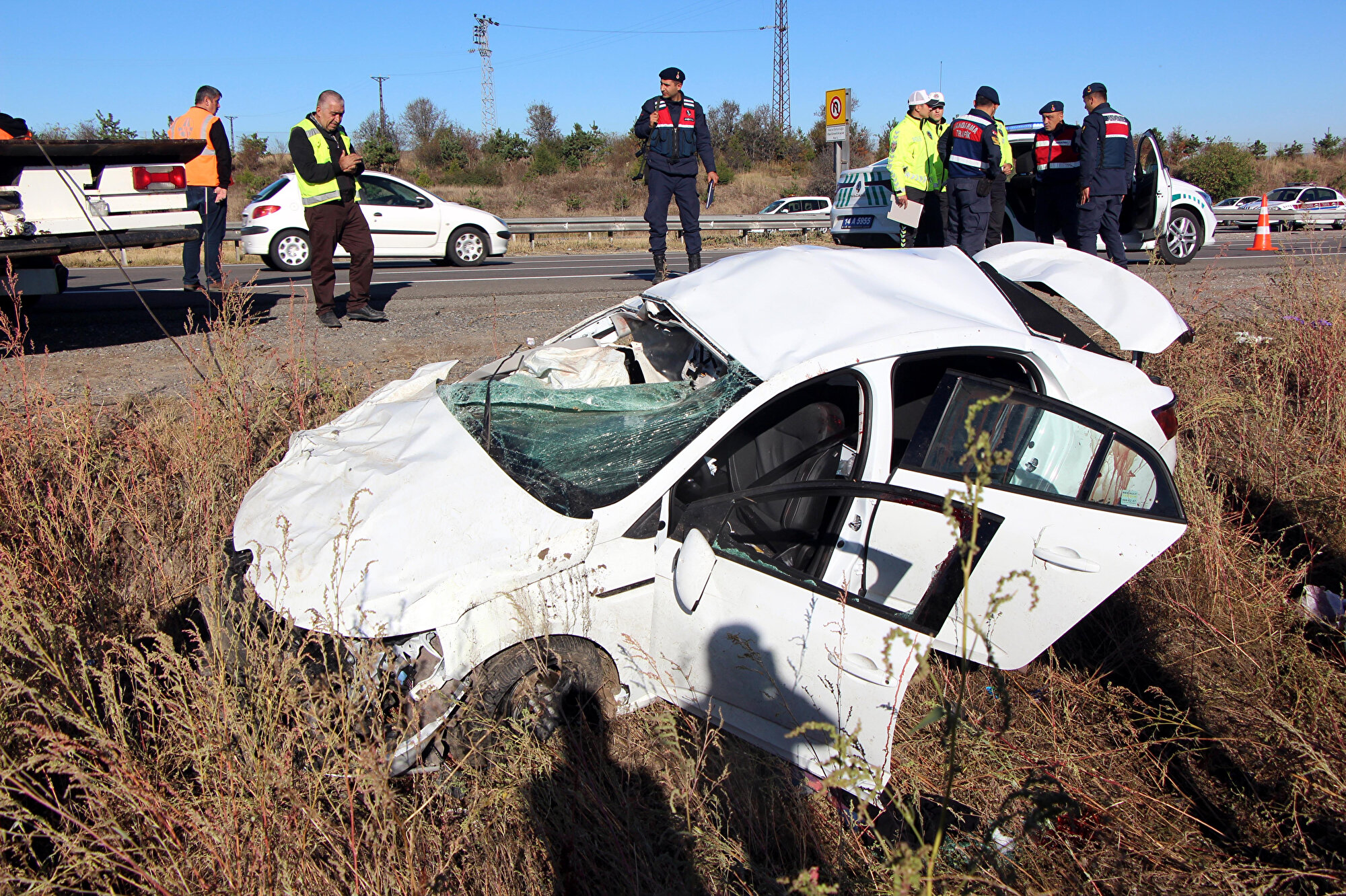 Bolu’da, TEM Otoyolu’nda seyir halindeyken kontrolden çıkarak şarampole yuvarlanan otomobildeki aynı aileden 3 kişi öldü 2 kişi yaralandı. Hurdaya dönen otomobilin sürücüsünün emniyet kemerinin koltuğa arkadan bağlı olduğu görüldü.