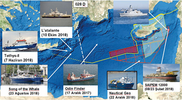 - Türkiye’nin MEB sahasında izinsiz faaliyette bulunmak isteyenler, Akdeniz Kalkanı Harekâtı kapsamında bölgeyi koruyan Türk donanmasını karşısında bulacak. Türk donanması, 2002’den itibaren yetki alanlarının batı sınırı da dahil tüm bölgelerde yoğun ‘gambot diplomasisi’ yürütüyor. 2002-2016 yılları arasında 14 yılda 14 araştırma gemisi TSK tarafından Doğu Akdeniz’de engellenmişti. Oldu-bitti çabalarının arttığı 2017-2018 yıllarında ise bir sondaj platformu ile 6 araştırma gemisine gambot (savaş gemisi ile caydırma) diplomasisi uygulandı. Bu gemilerin 3’ü, Girit’in doğusunda Rodos’un güneyinde engellendi. İtalyan ENİ firmasına ait ‘Saipem 12000’ sondaj gemisi, Güney Kıbrıs Rum Yönetiminin sözde MEB sahalarında Şubat 2018’de Türk fırkateynlerince engellenirken, araştırma gemilerinden İtalyan ‘Odin Finger’ ise Aralık 2017’de, Alman ‘Maria S Merian’ Mart 2018’de, Fransız ‘Thetys II’ Haziran 2018’de, İngiliz ‘Song of Whale’ Ağustos 2018’de, Fransız ‘L’atalante’ Ekim 2018’de, Malta bayraklı ‘Nautical Geo’ araştırma gemisi ise Aralık 2018’de bölgeden sürülerek hukuksuz faaliyetlere izin verilmedi.