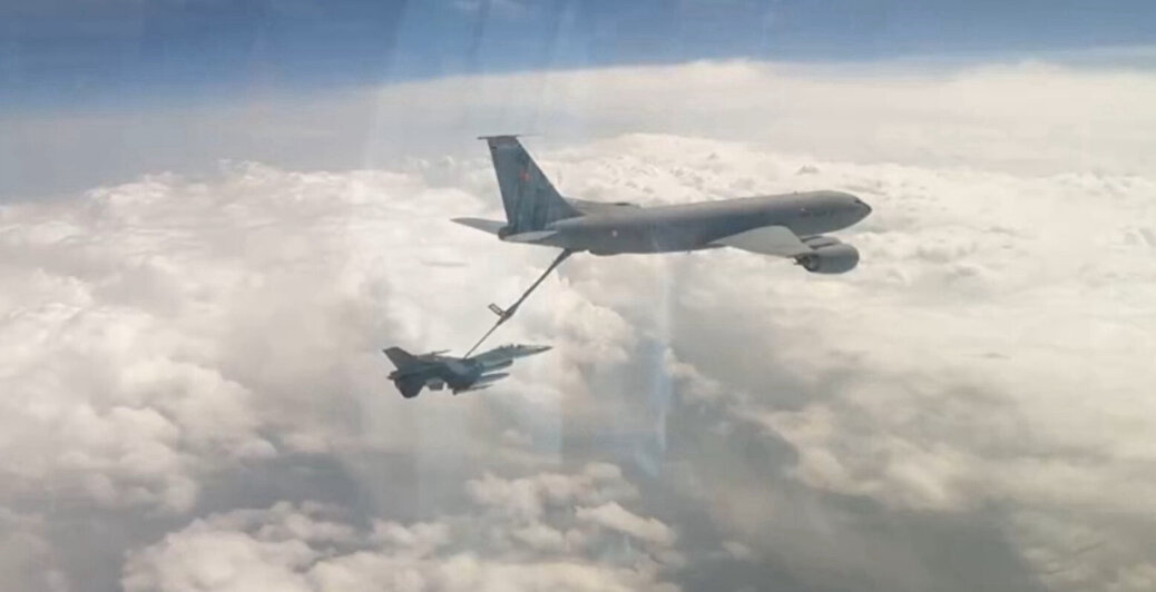 "Hava Kuvvetleri Komutanlığımıza bağlı farklı üslerden havalanan muharip ve destek uçaklarımızın katılımıyla Kıbrıs Adası'nın güneyinde, Akdeniz'in uluslararası hava sahasında eğitim uçuşu gerçekleştirildi"