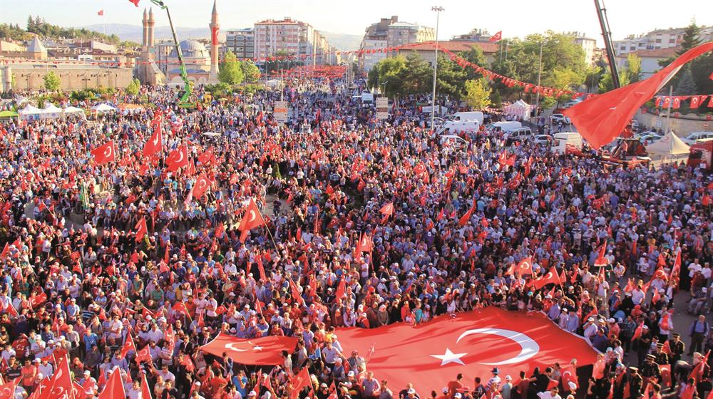 FETÖ’nün hain darbe girişimini büyük bir ferasetle püskürten Türkiye, 23 gündür tuttuğu demokrasi nöbetini pazar günü meydanları doldurarak taçlandırdı. Cumhurbaşkanlığı himayesinde İstanbul Yenikapı’da düzenlenen mitinge 5 milyon vatandaş katılırken diğer illerde kurulan dev ekranlarla konuşmalar takip edildi.